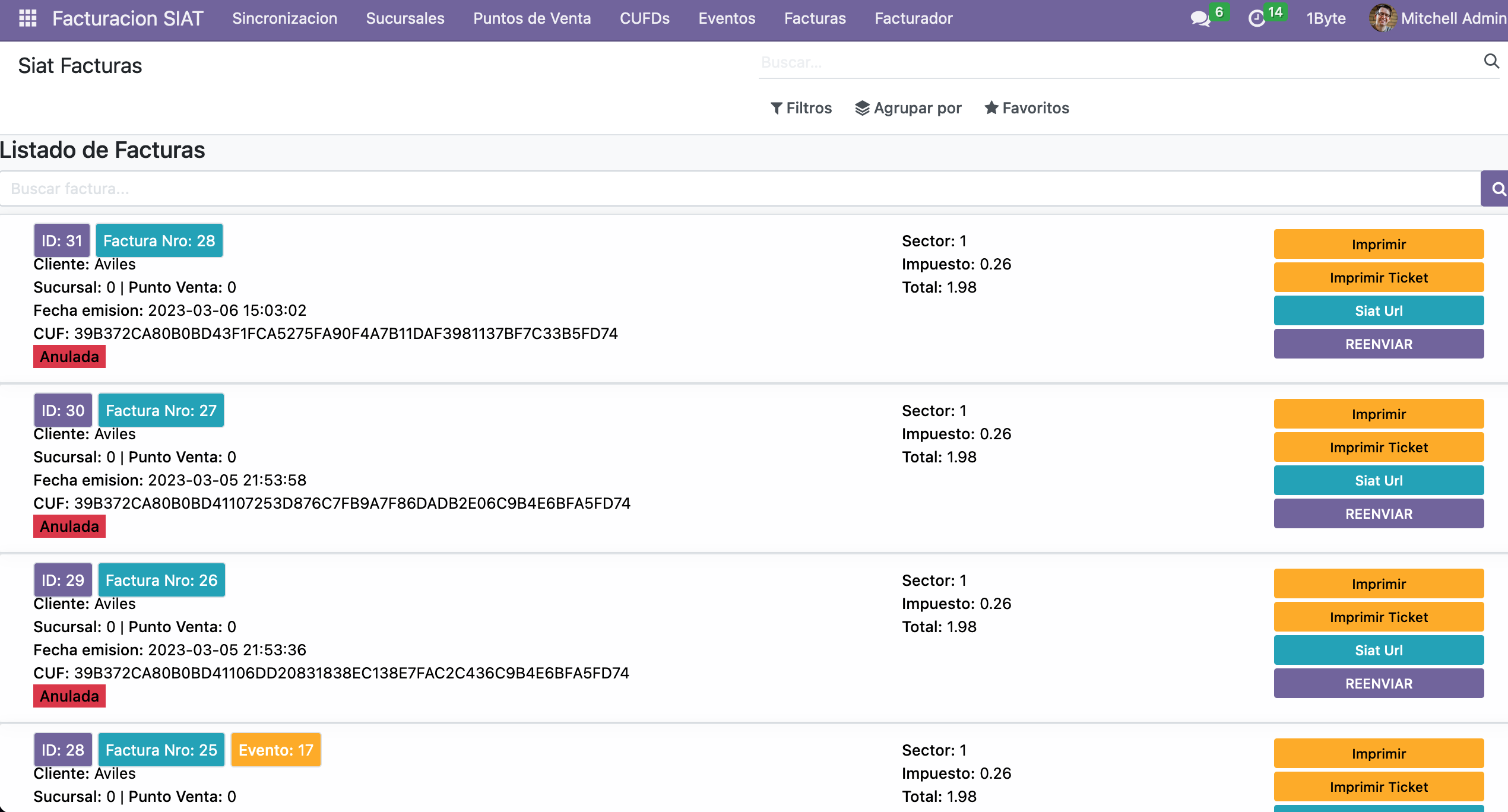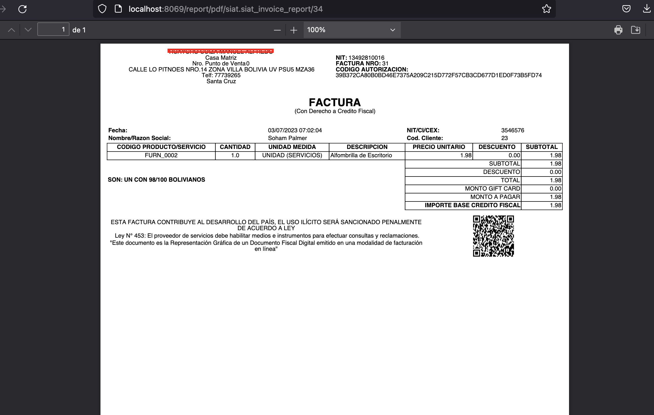 Nuestra aplicacion de Facturacion Electronica SIAT para Odoo, tiene una conexion directa con los servidores de Impuestos Nacionales de Bolivia y toda la información de facturacion se almacena directamente en su base de datos local.