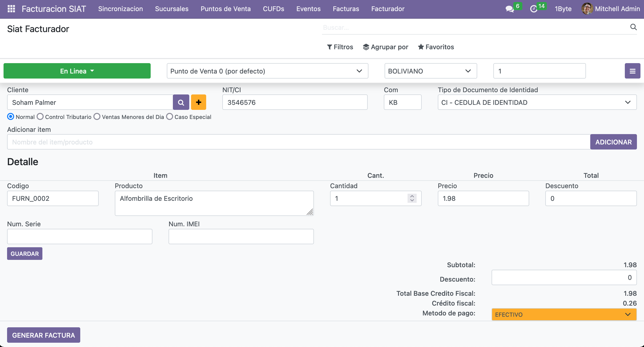 - Interface para la creacion y emision de facturas en linea y fuera de linea