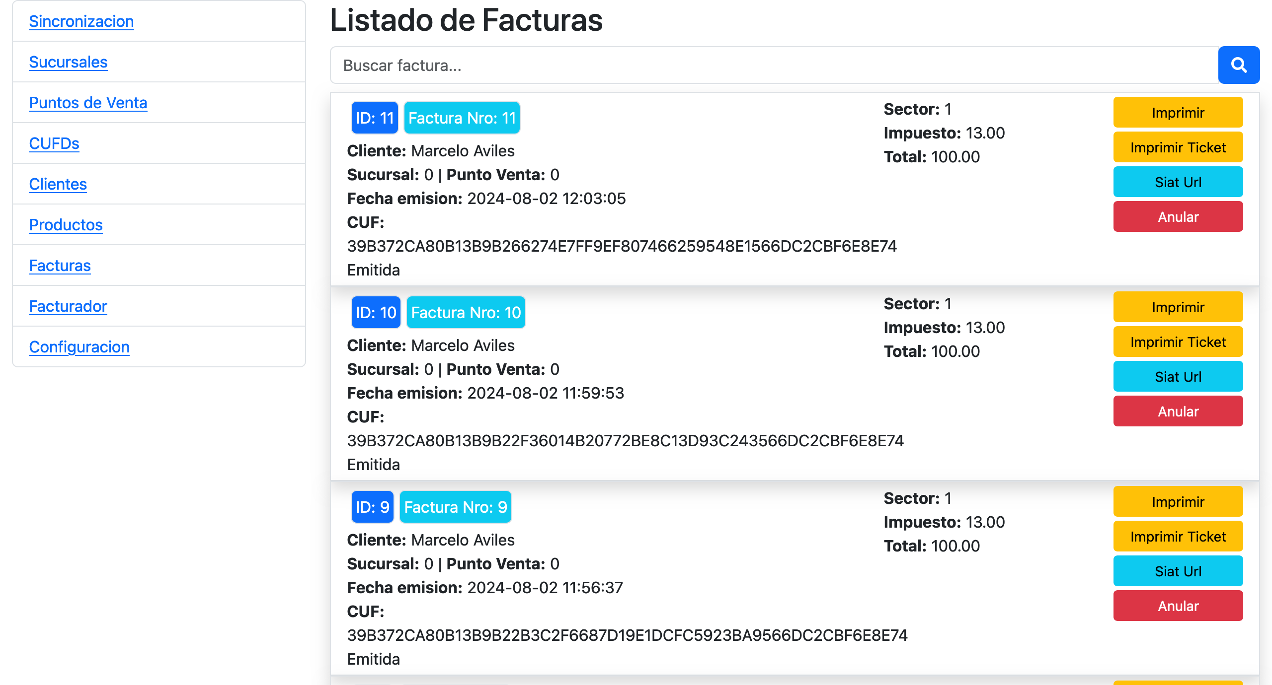 Una interface simple e intuitiva para poder generar y emitir las facturas.