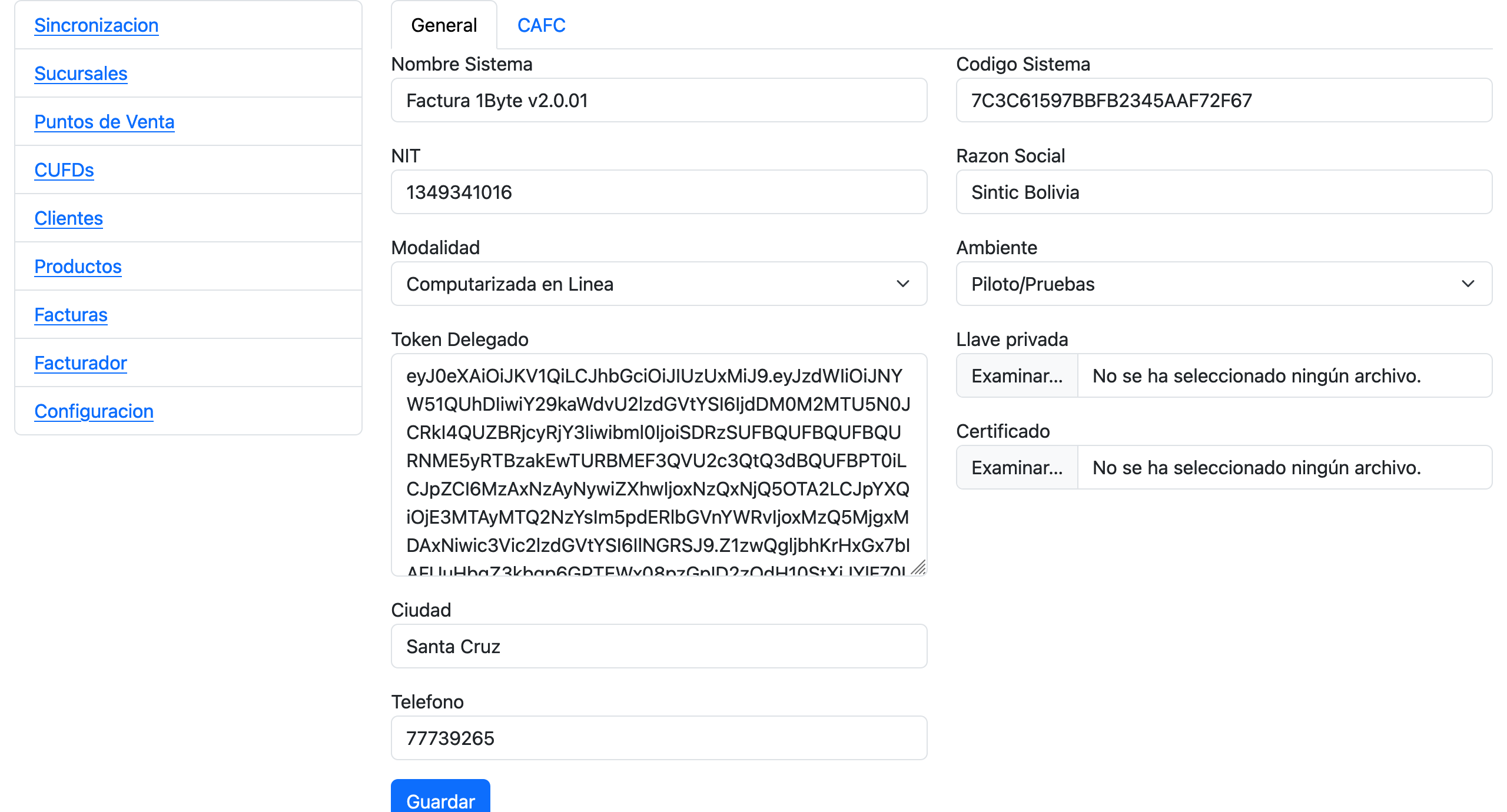 Soporte para la emision de facturas en la modalidad Computarizada en linea