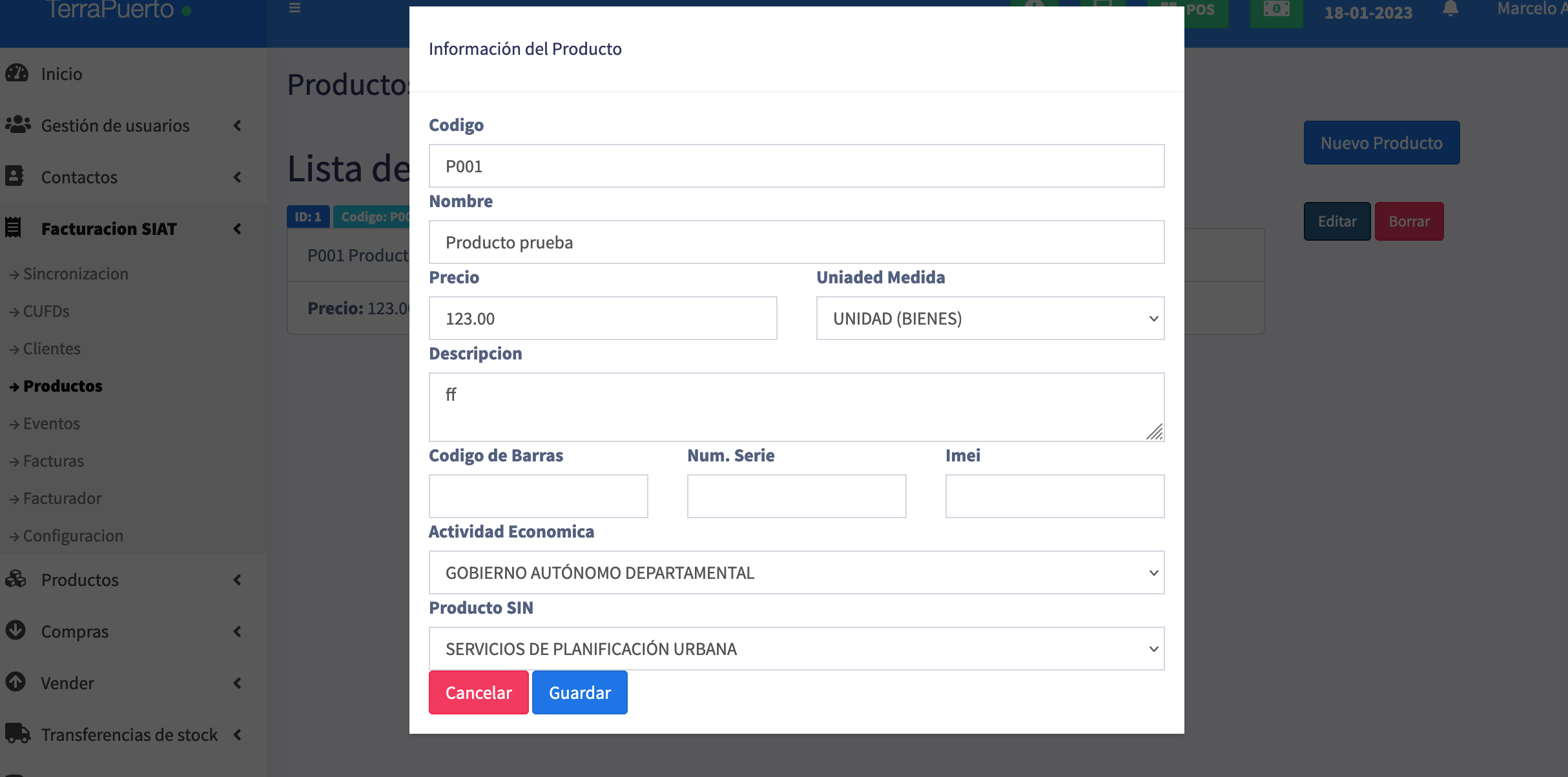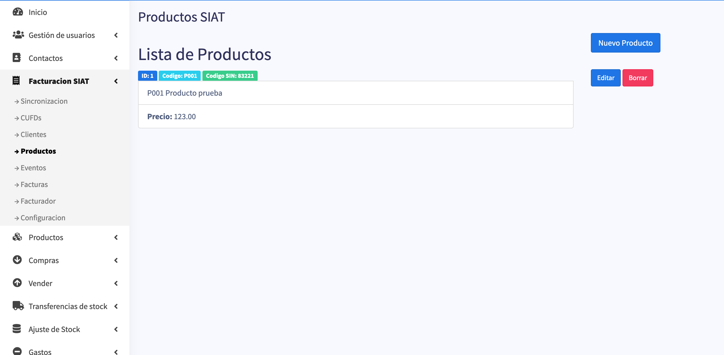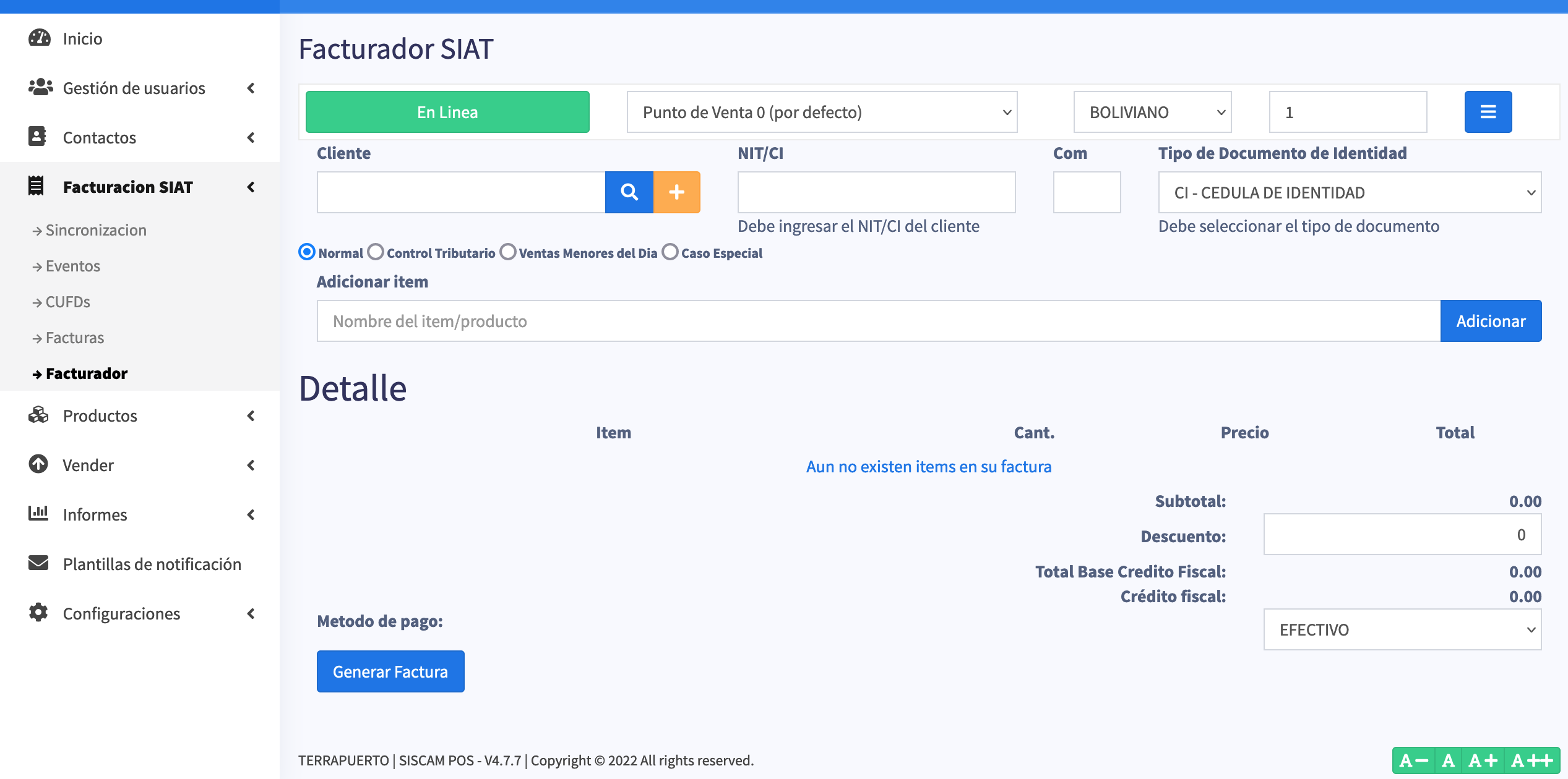 Interface de Facturación SIAT lista para facturar