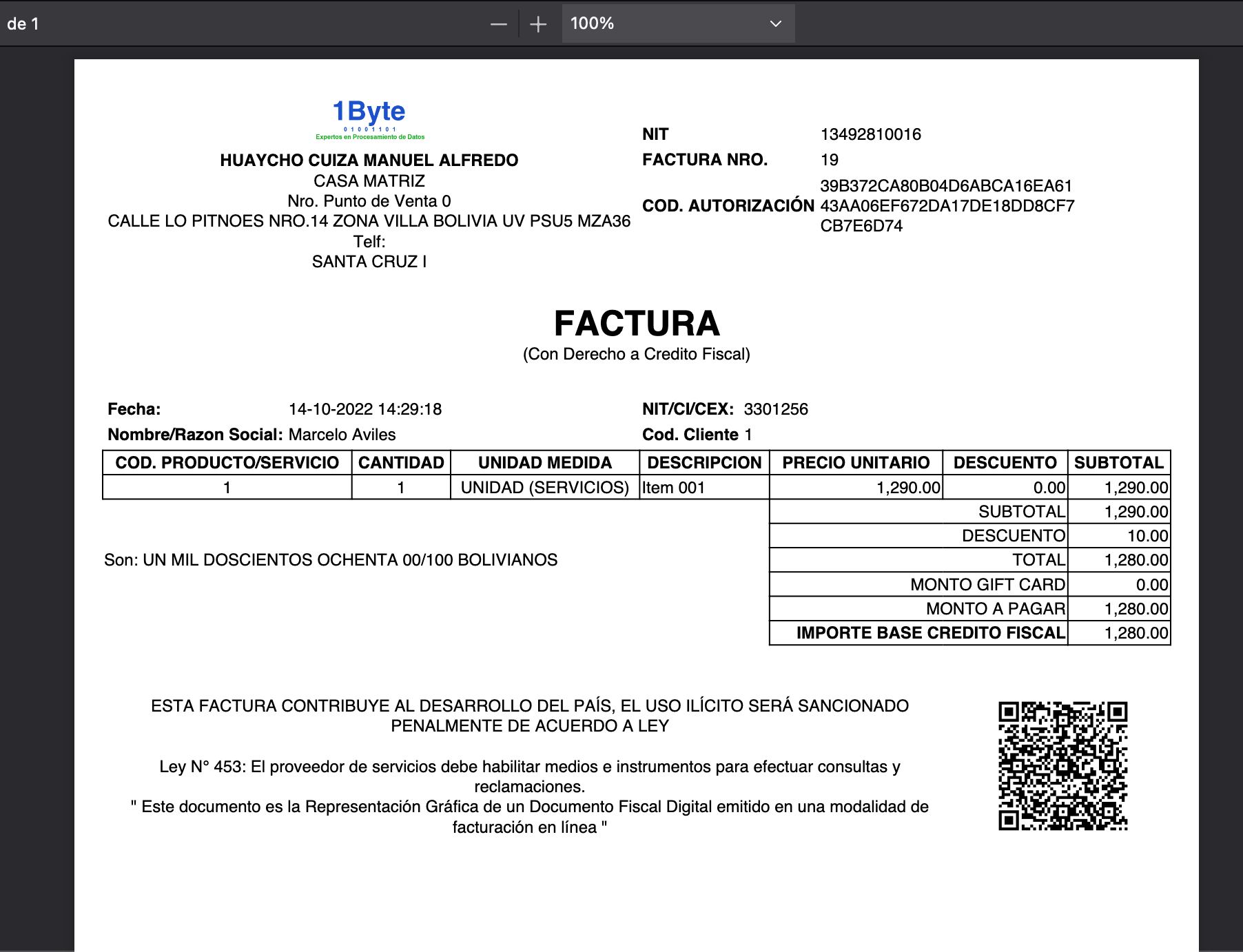 El servidor le permite generar facturas para el nuevo sistema de facturación SIAT v2.