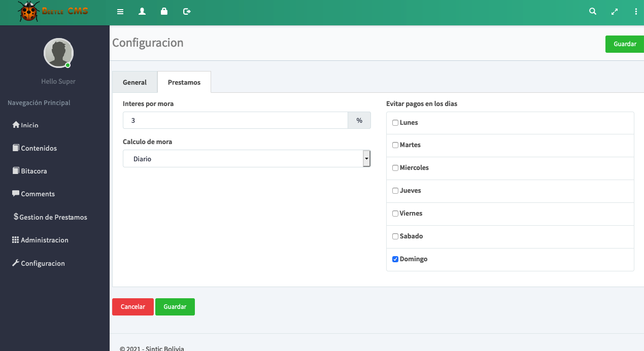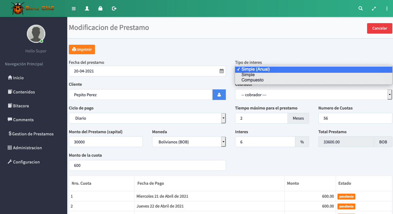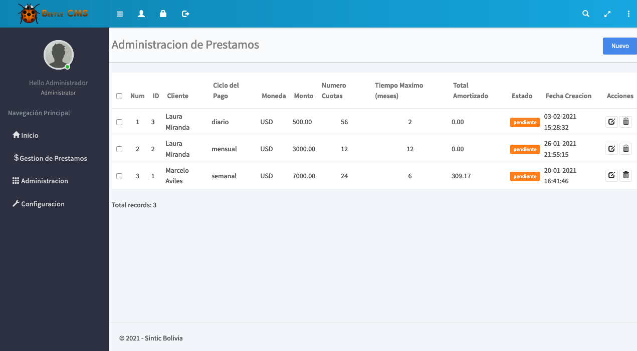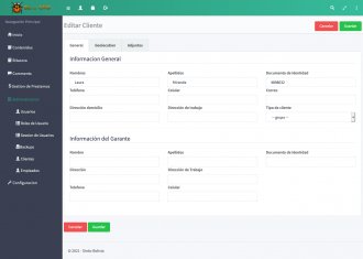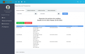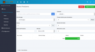 Cuenta con una interfaz amigable, practica, diseño agradable y fácil de usar. Nuestro sistema no tiene limitaciones de ningun tipo, puede crear y gestionar los creditos ilimitadamente.